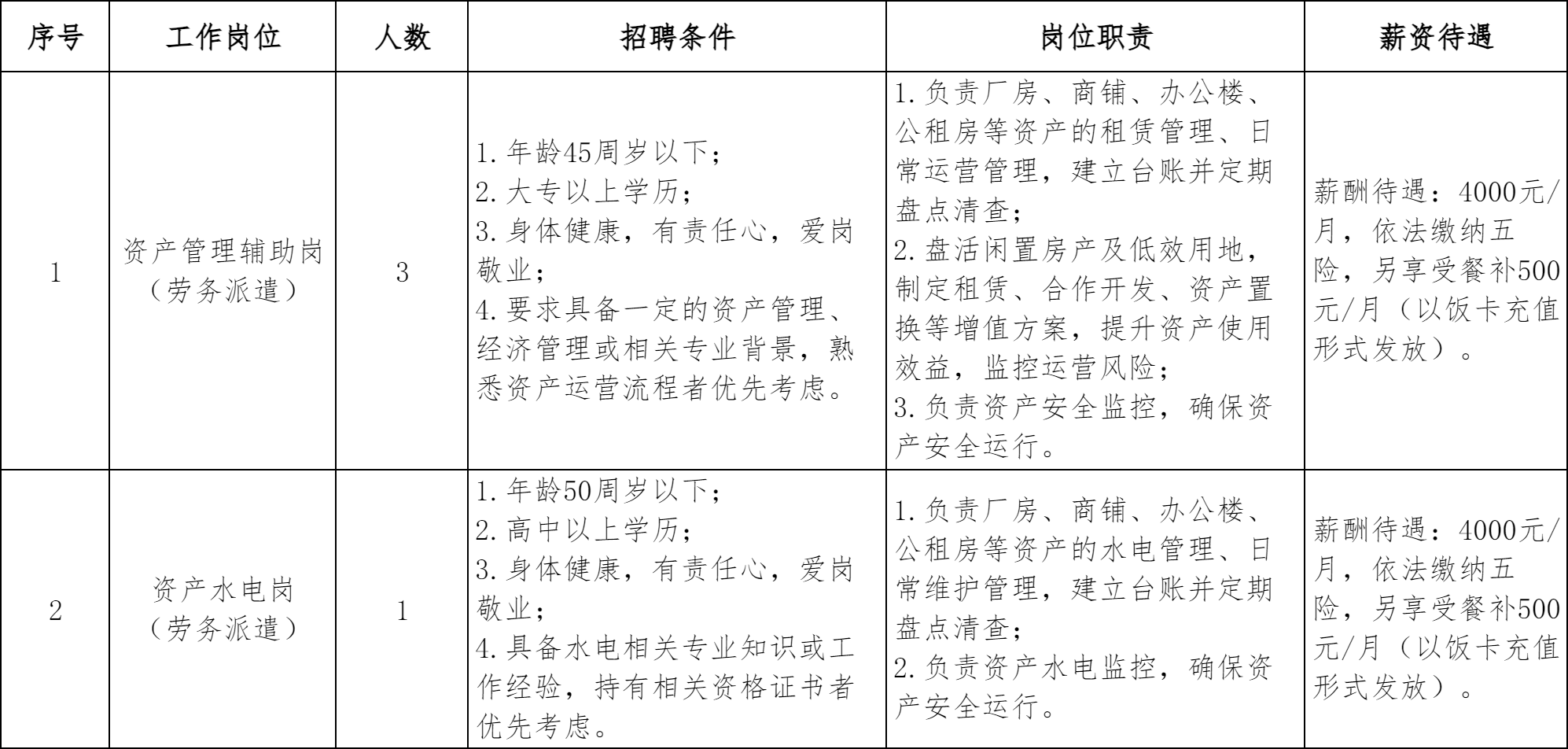 本次计划招聘劳务派遣用工人员共4名,具体岗位及要求如下: