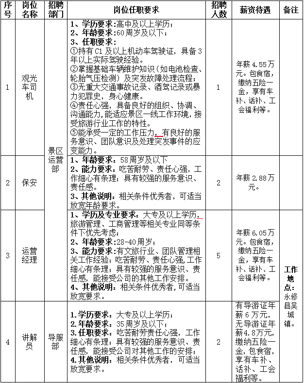 因永修吴城候鸟小镇旅游运营管理有限公司发展需要,决定面向社会公开招聘12名劳务派遣制工作人员,现将有关事项公告如下: